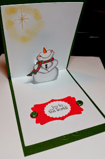 Yep, this is such a GREAT card! I love the punched out windows for the little snowmen faces. Snowflake is beautiful and the faces inside look so stinkin' cute too!